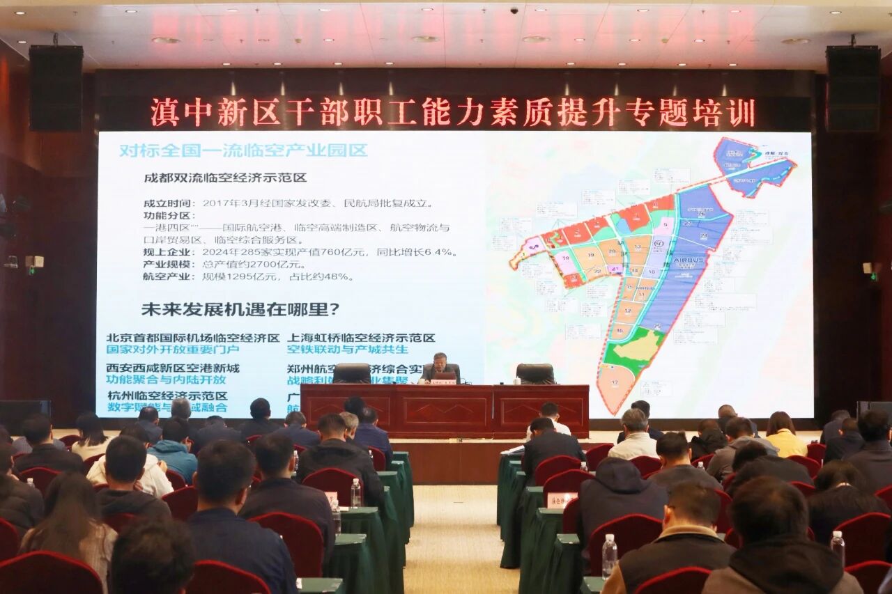 10月17日,滇中新区举办干部职工能力素质提升专题培训,特邀云南航空投资集团总裁助理,云南空港飞机维修服务有限公司党委书记、董事长夏光辉进行专题授课。