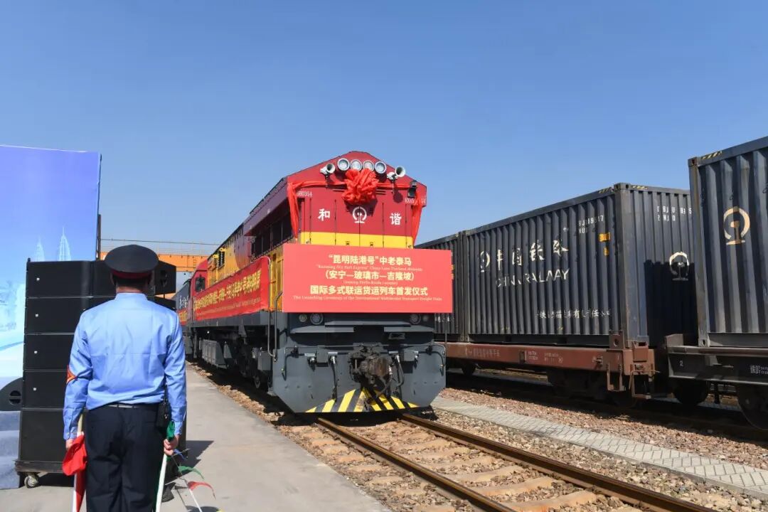 “昆明陆港号”中老泰马国际多式联运货运列车首发。
